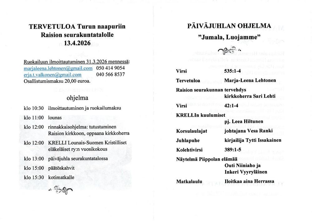 Lounais-Suomen piirin kevätjuhlan 13.4.2026 ohjelma