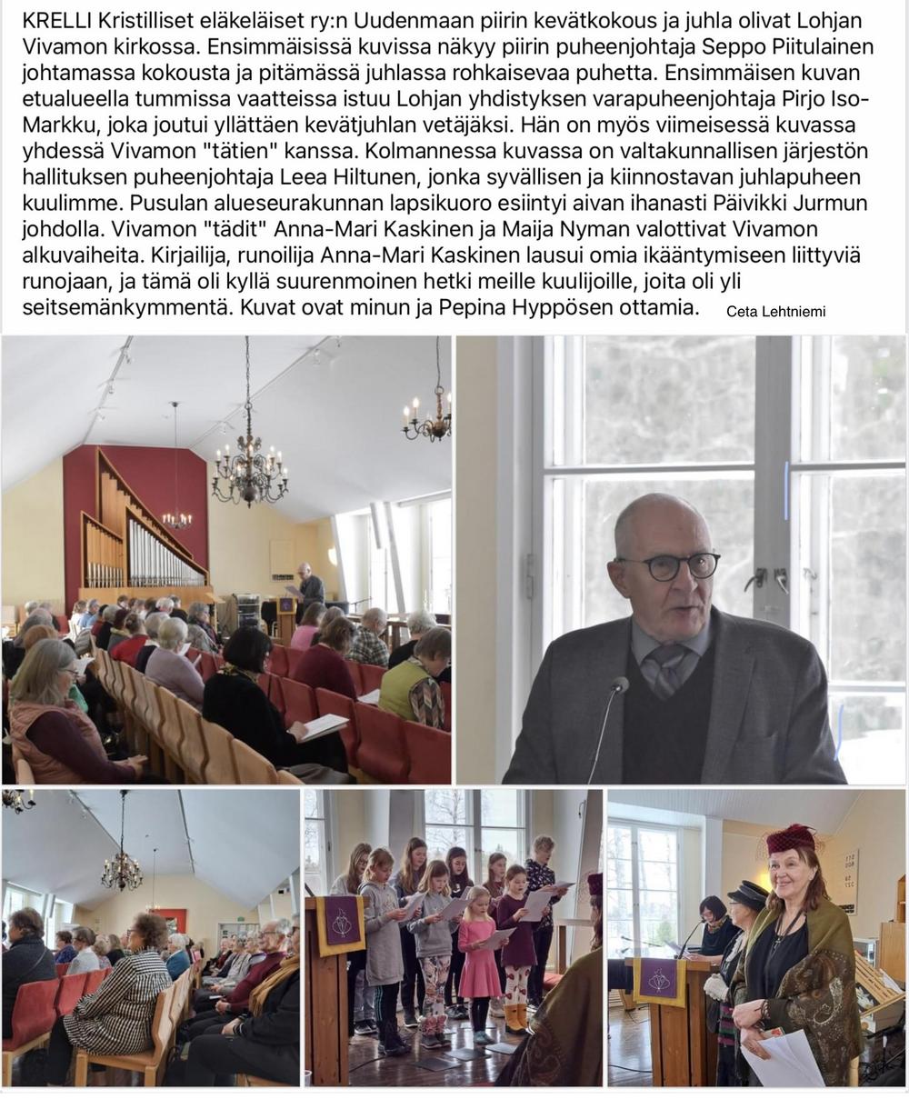 Kristelli 4/2024 artikkeli Lohjan Seudun Kristilliset Eläkeläiset ry:n 20 v. juhlasta