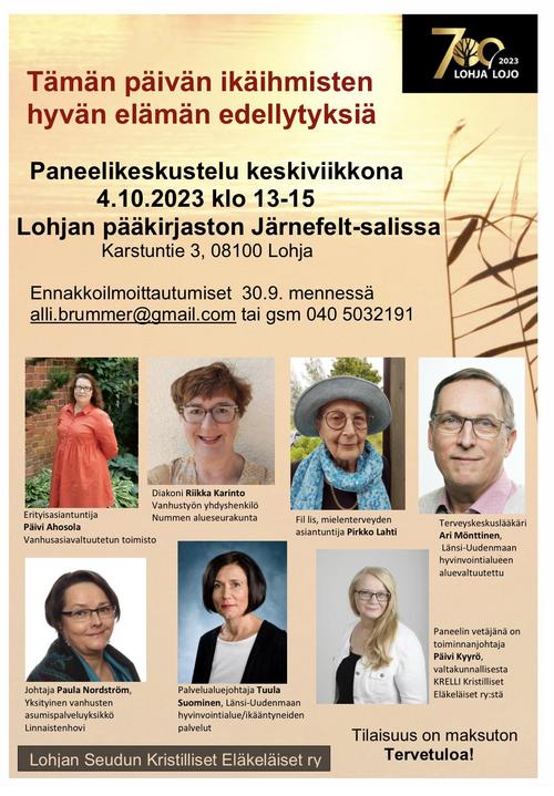 Galleria 1. Ensimmäinen kuva on kooste menneistä Ollaan yhdessä -tilaisuuksista. Sitten on kuvia vuoden 2025 tilaisuuksista. Kuvia katsoessa huomaa miten tärkeäksi olemme kokeneet yhteistyön muiden lohjalaisten yhdistysten ja seurakuntien kanssa. Myös Vivamo, Lohjan kaupunki ja Länsi-Uusimaan hyvinvointialue ovat hyvin tärkeitä yhteistyötahoja. Samoin valtakunnallisiin Krellin tilaisuuksiin olemme osallistuneet.