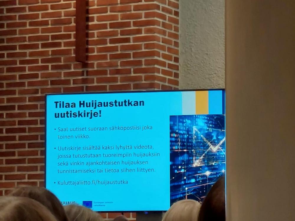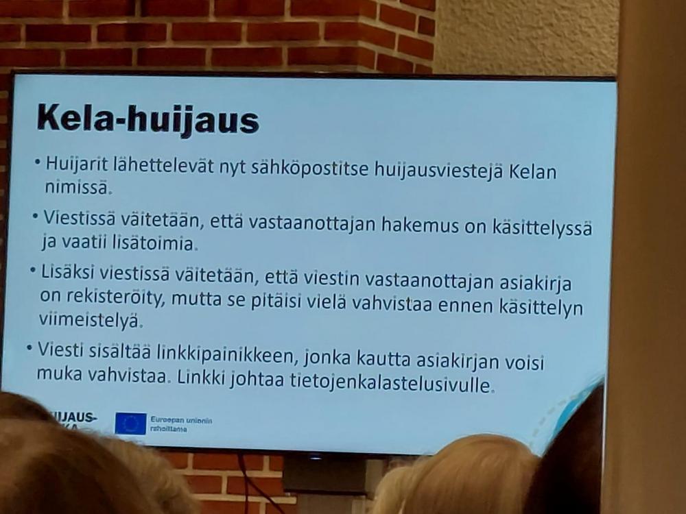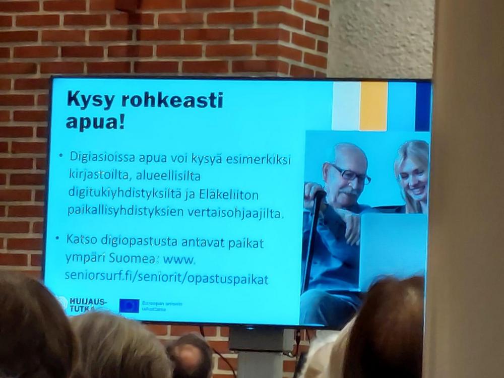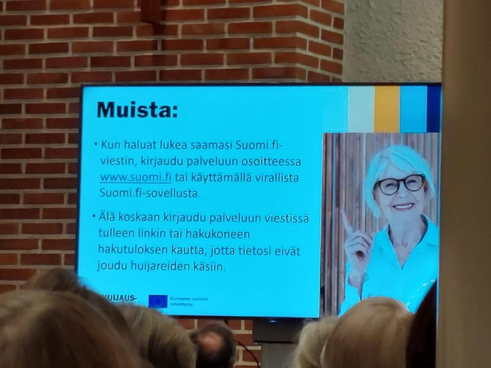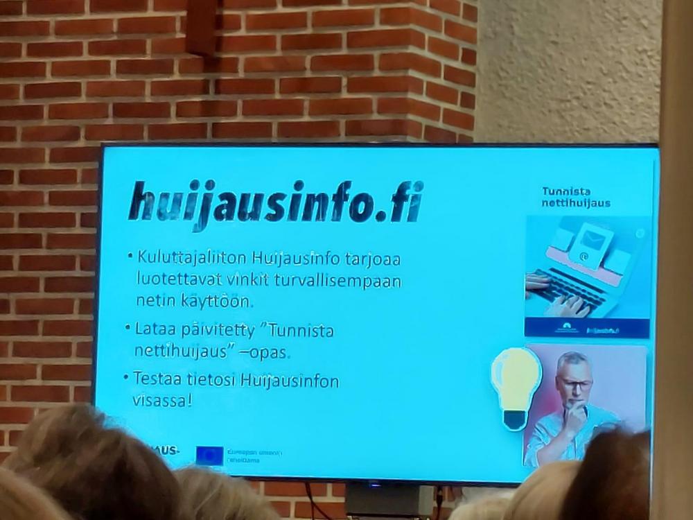 Valokuvia Ikinuorten kuukausitilaisuudesta 21.04.2026 Näsin salissa. . Puhujavieraana oli Kuluttajaliiton kouluttaja Ilo Bruun aiheella Ajankohtaiset huijaukset. Kuvat Leena Järvinen