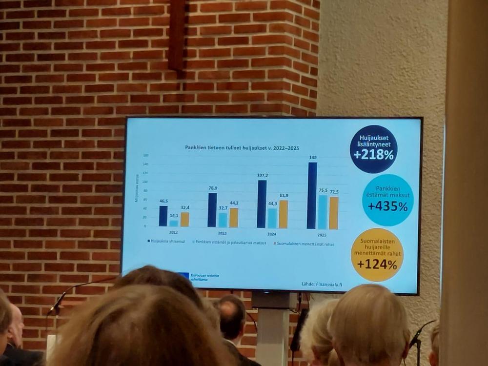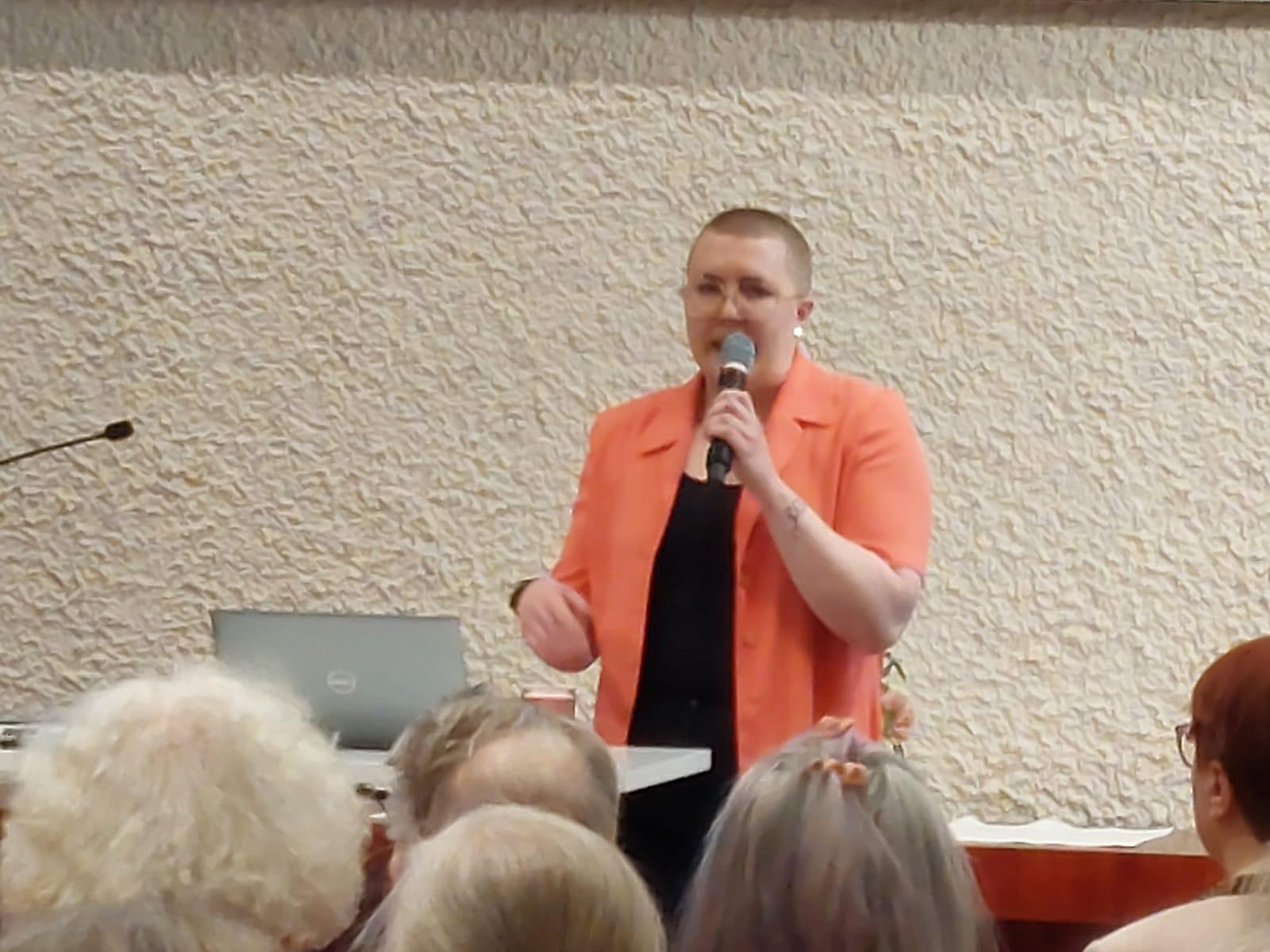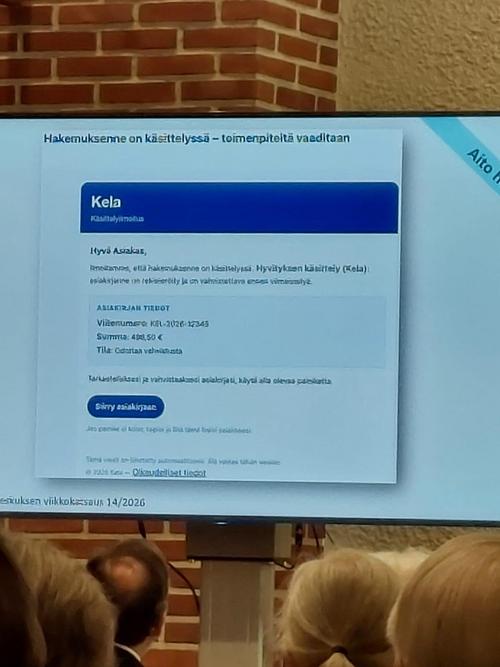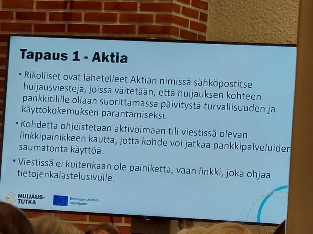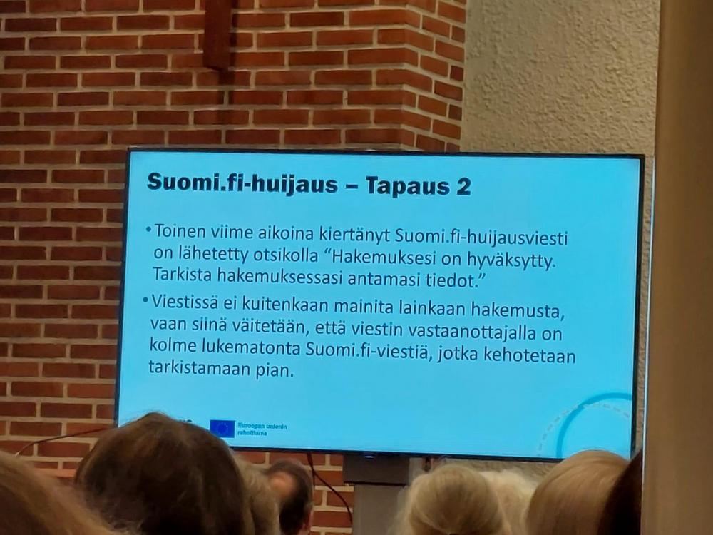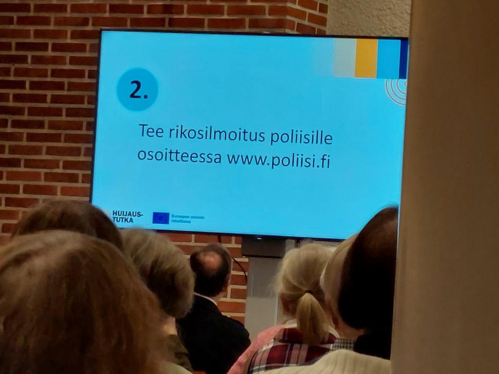 Valokuvia Ikinuorten kuukausitilaisuudesta 21.04.2026 Näsin salissa. . Puhujavieraana oli Kuluttajaliiton kouluttaja Ilo Bruun aiheella Ajankohtaiset huijaukset. Kuvat Leena Järvinen