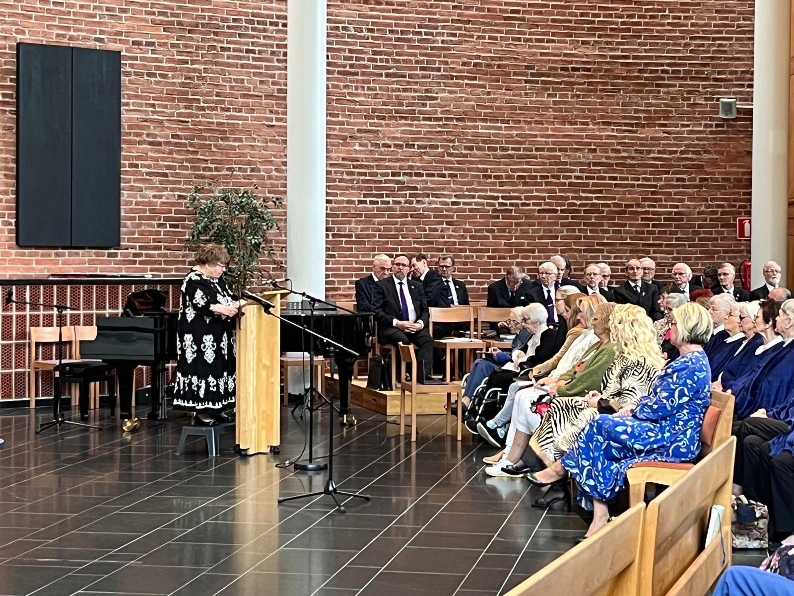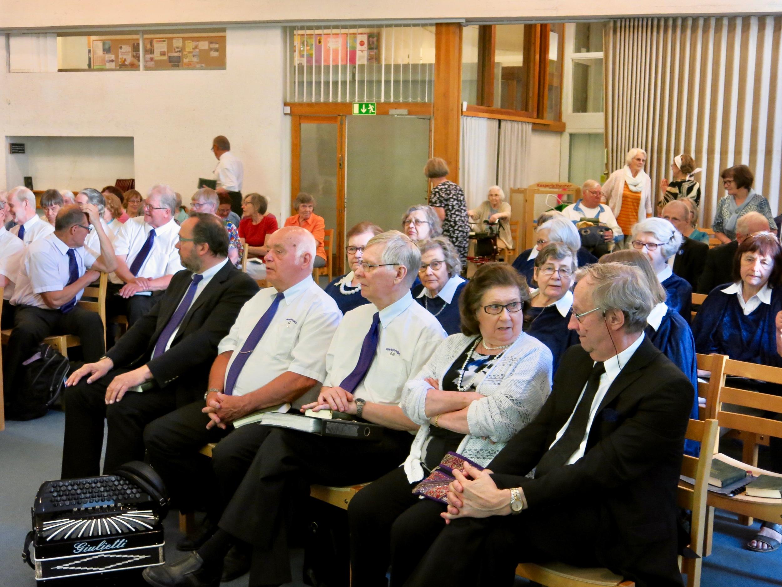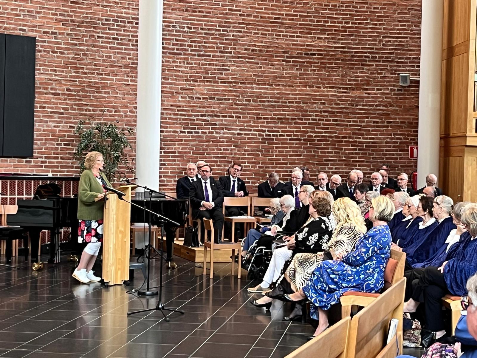 Kansanedustaja Sari Tanus esitti oman tervehdyksensä ja pastori Minna Kyrkkö esitti Tuomiokirkkoseurakunnan terveiset. Raamatunlukuryhmä esiintyi Ritva Sirenin johdolla. Tuula Kivimäki kertoi Ikinuorten historiasta. Juhlapuheen piti Krellin puheenjohtaja Leea Hiltunen. Musiikkiesityksinä kuulimme Viestiveljien onnittelulaulun ja Tampereen Kristillisen koulun esityksen. Hanna Forsgren-Autio piti jumppatuokion. Keijo Kantonen ja Leena Järvinen jakoivat ansiomerkkejä. Juhlamme päättyi Matkalauluun. Kiitoksia kaikille upeista juhlista!