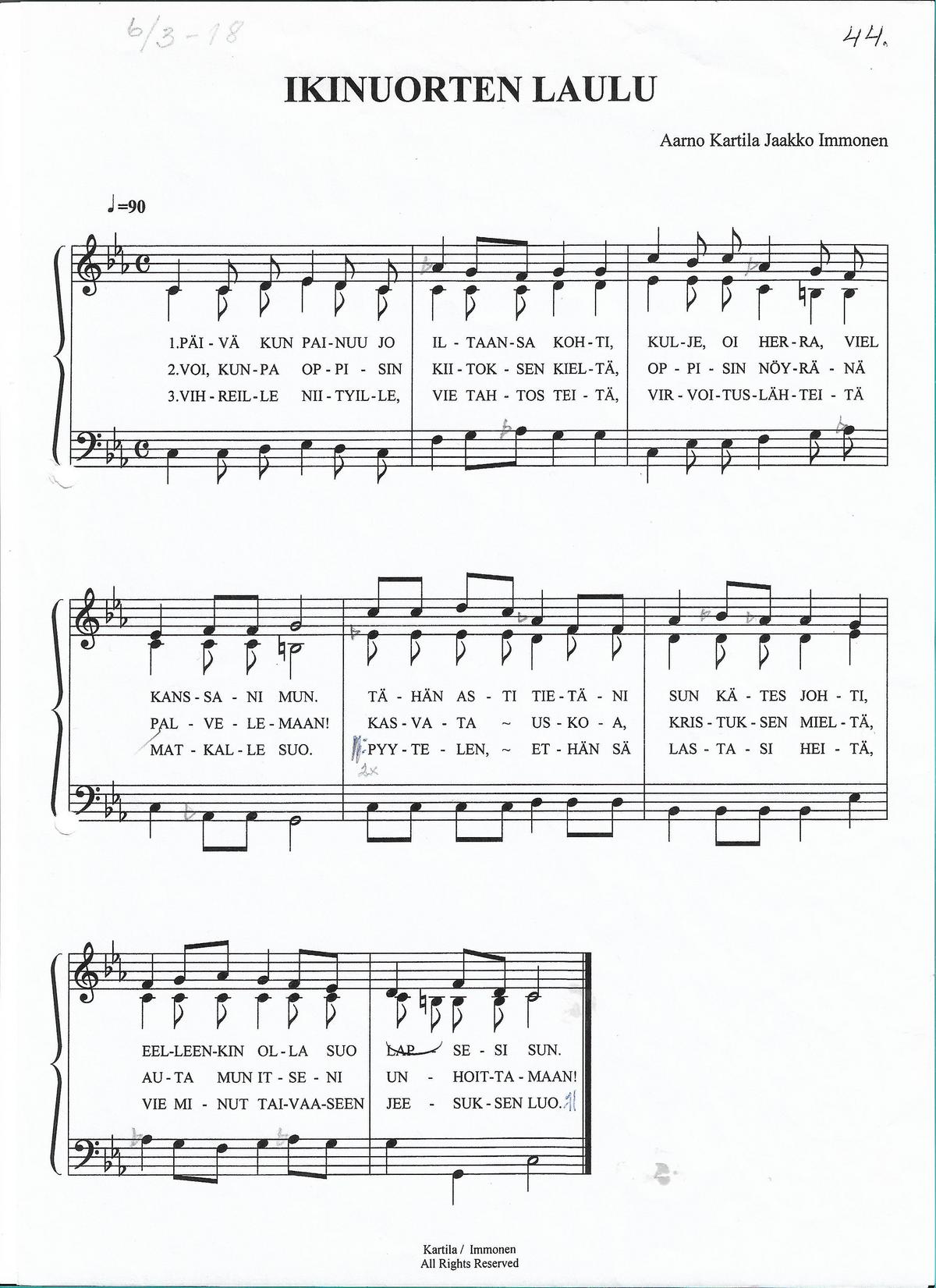 Ikinuorten kuoro esitti Soraäänistä sulosointuihin -kuorokisassa Saara Kettusen sanoittaman ja Reijo Kettusen säveltämän kappaleen 100 vuotta juhlii maamme. Video Pasi Toivonen. Linkki videoon: 100 vuotta juhlii maamme